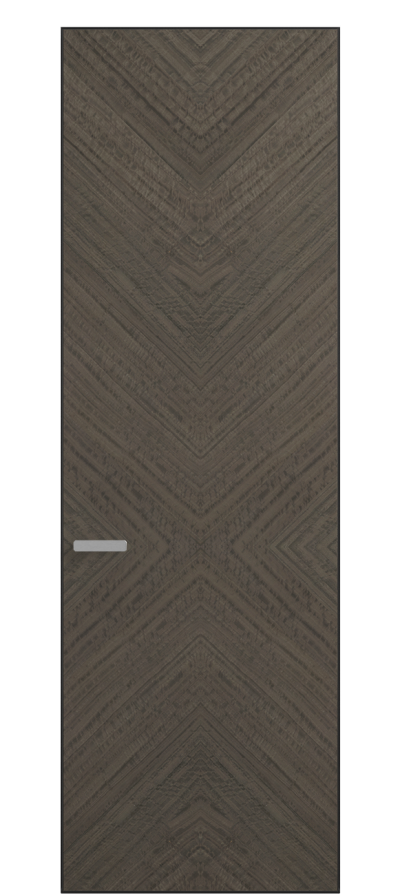 Полотно Рифт в скрытом алюминиевом коробе становится полноценным элементом декора. В коллекции представлено 9 моделей дверей в высоте до 3 метров. Рисунок раскладки шпона варьируется от простого до сложного. «Рубашка» для каждого полотна подбирается вручную по цвету, текстуре и фактуре.