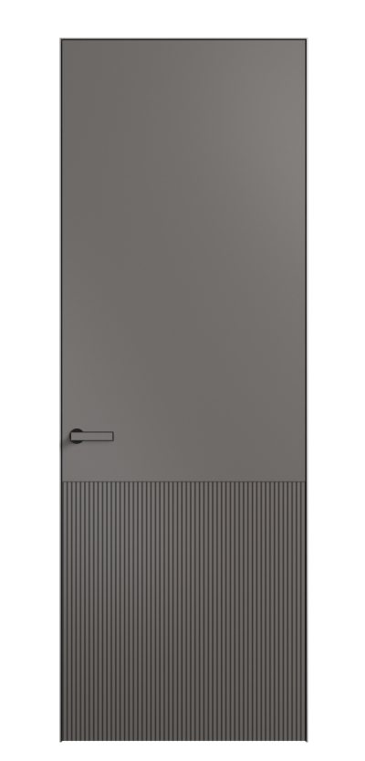 Это полотна с рельефной фрезеровкой. Этот прием делает интерьер объемным, тактильным, вносит интересную текстуру и создает современный образ. Волнистый рельеф может быть выполнен по ламелям из массива дуба в древесных матовых отделках, либо исполнен по натуральному и экологически безопасному материалу — ХДФ, покрытому гладкой эмалью актуальных оттенков.