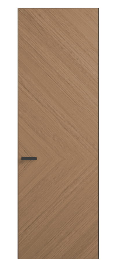 Полотно Рифт в скрытом алюминиевом коробе становится полноценным элементом декора. В коллекции представлено 9 моделей дверей в высоте до 3 метров. Рисунок раскладки шпона варьируется от простого до сложного. «Рубашка» для каждого полотна подбирается вручную по цвету, текстуре и фактуре.