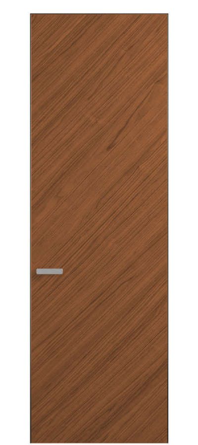 Полотно Рифт в скрытом алюминиевом коробе становится полноценным элементом декора. В коллекции представлено 9 моделей дверей в высоте до 3 метров. Рисунок раскладки шпона варьируется от простого до сложного. «Рубашка» для каждого полотна подбирается вручную по цвету, текстуре и фактуре.