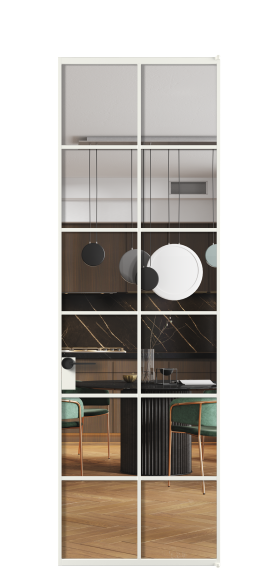 Двери Формато сочетаются с алюминиевыми перегородками Формато, стеновыми панелями Волховец и коллекциями межкомнатных дверей Планум Про, Вельвет.