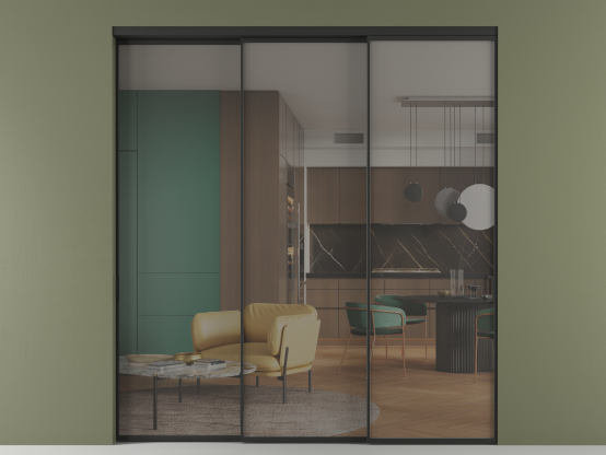 Перегородка Формато внутри проёма 3 створки с синхронным механизмом