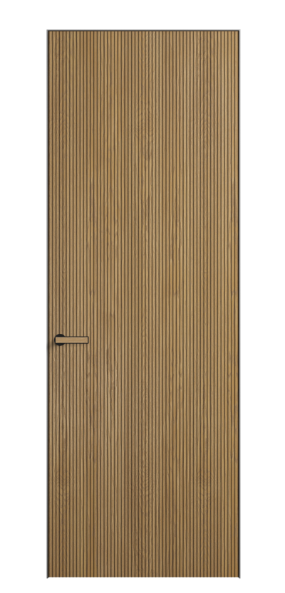 Это полотна с рельефной фрезеровкой. Этот прием делает интерьер объемным, тактильным, вносит интересную текстуру и создает современный образ. Волнистый рельеф может быть выполнен по ламелям из массива дуба в древесных матовых отделках, либо исполнен по натуральному и экологически безопасному материалу — ХДФ, покрытому гладкой эмалью актуальных оттенков.